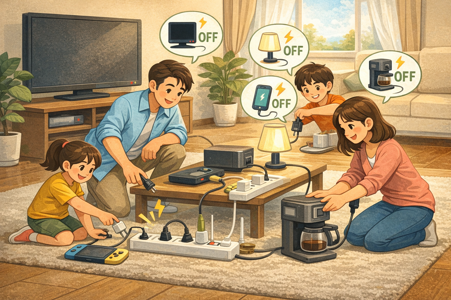 이 두 가전의 공통점은 하루 실제 사용 시간은 매우 짧지만, 나머지 대부분의 시간을 대기 상태로 보내고 있다는 점입니다. 따라서 사용 후 전원을 차단하는 것만으로도 절감 효과가 즉각적으로 나타납니다. 콘센트를 직접 뽑거나 멀티탭 스위치를 끄는 간단한 행동이 전력 낭비를 막는 가장 확실한 방법입니다. 커피를 한 잔 마신 뒤 전원을 끄는 행동을 함께 실천해 보시면, 대기전력 관리가 생각보다 어렵지 않다는 것을 느끼실 수 있습니다.