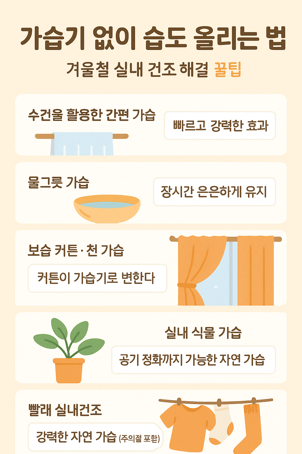 5. 빨래 실내건조 — 강력한 자연 가습 (주의점 포함)